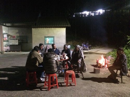 途中で、人に出会うと皆挨拶している。この辺は皆知り合いらしい。そしてついに目的地に着いた。その家の庭ではたき火をしており、外にテーブルが出て、皆が酒を飲んだり、食べ物を食べたりしていた。ちょっと寒いが、何とも気持ちの良い風が吹いている。ここには葉家の親戚が毎年大晦日に集まり、新年を迎えるという。我々の後からも人がやってくる。