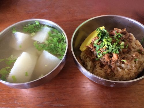 昨晩は寝るのが遅かったので、朝はかなりゆっくり起きた。元日の朝は快晴だ。素晴らしい1年の始まり。昨日あんなに食べたのに、それでも腹は減る。果たしてどこで飯にあり付けるのかと危惧しながら下に降りると、何と宿泊先の下の店が開いているではないか。『新年快楽!』と声を掛け、名物のおこわご飯と大根スープをもらう。これはいい始まりだった。