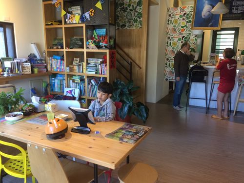 だがバスは予想通り渋滞に嵌り、なかなか到着しなかった。それでも通常より30分程度の遅れでバスがターミナルに入ってきたのでホッとした。車ですぐに宿泊先に向かう。歩くと大変だが、車なら5分で着く。この宿は昨年開かれたばかりで、明るくてきれいな民宿。一階のリビングには本がたくさん置かれ、くつろげるスペースになっている。2階の部屋も居心地のよさそうな、ちょっと可愛らしい若者向けの作りになっていた。