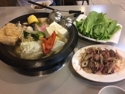 夕飯を探してまた歩き出す。閉まっている店が多い中、普段私が立ち止まることもない、こぎれいな石鍋の店に入ることになる。そこはジンギスカン鍋を謳っているが、なんで埔里でジンギスカンなんだろうか。見ると比較的若い人を中心に結構な賑わいを見せているので驚いた。地元の人は地元に料理に飽きているということだ。