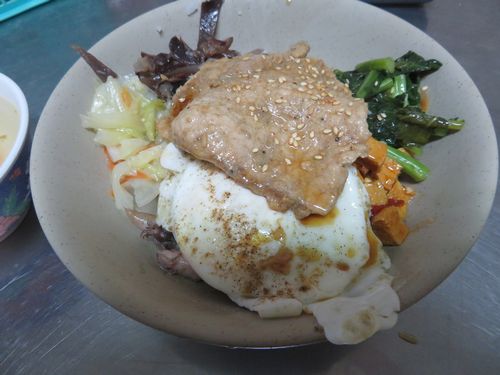 昼ごはんは近所で気に入っている、焼肉飯を食べる。焼肉という文字が引っかかりやすい。実際には焼肉弁当の体であり、大き目の肉が2枚入っていて、後は野菜や蛋など。店内で食べるとこれがどんぶりで出てくる。何というか、どこがうまいか言葉で表せないがうまいのだ。スープは無料、自分でよそう。60元。