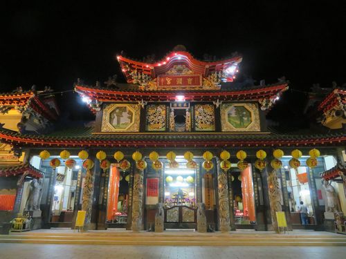 朝まで電気はついているらしいが、ずっと見学する必要はない。すぐ近くの地母廟に行ってみる。夜の廟はかなり煌びやかに見える。この寺は規模もすごく大きい。夜でもお参りに来ている人がいる。自転車に乗った子供が遊んでいるのが、台湾らしい。