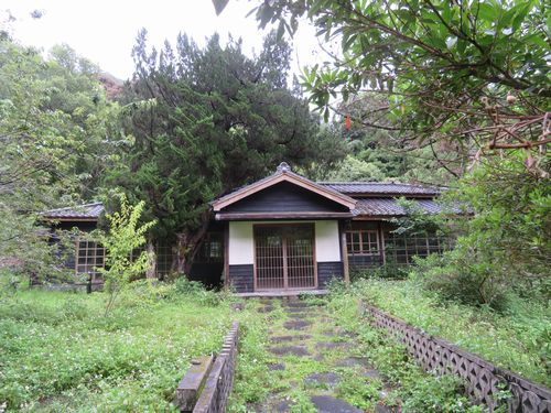 その先にはいくつか温泉宿が開いてはいたが、もう風前の灯。ここは2008年、2012年に起きた台風・洪水で大きな被害が出ており、政府としては安全面からこの温泉郷全体の閉鎖を促しているが、まだ一部が応じていないのだ、という話もあった。その先はもう何もなさそうだったが、バスの時間まで間があったので散歩してみる。天仁銘茶のホテルなどがあるが、やはり既に閉鎖されている。少し古い建物が見えるが、そこはこの地を好んだ蒋介石ゆかりの蒋公行館。今は特に使われていない。