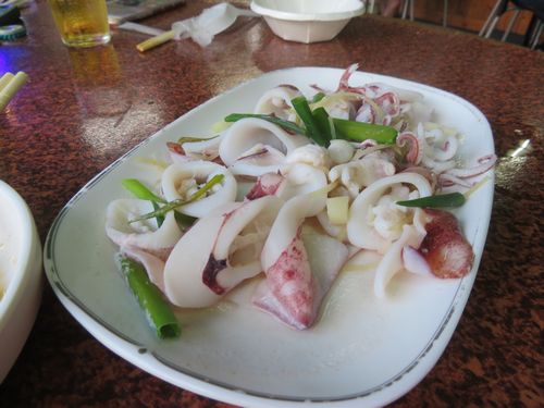 茶酔いさんが到着すると、李さんが魚池からすぐにやって来た。この2人の関係はよくわからないが、李さんは何とも親切な人である。今は茶農家だが、昔はコックだった人で、何とGHから歩いて3分のところに、昔のオーナーが店を出していると言って連れて行ってくれた。ここは海鮮料理と書かれているが、日曜日のせいか、お客が多く、席はない。だが李さんは事前に連絡していたのか、ちゃんと席が設けられる。