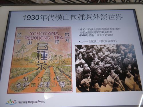 『昔は横山にも茶畑が沢山あった』と言いながら見せてもらった資料の中に目を引くものがあった。そこには横山包種茶というポスターがあり、1930年代には相当量が輸出されたとある。1970年に最後の工場が閉鎖され、横山包種茶の時代は終わったらしい。そして現在は、残念ながら茶畑はない。それでもこの事実は全くの想定外。包種茶と言えば、坪林、または日本時代の文山地区で作られたとばかり思っていたので、相当のインパクトがあり、これについて調べる気になる。