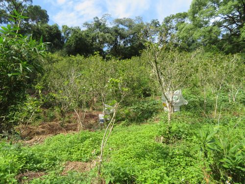 そこから遊歩道を下ってみた。山の木陰は思いのほか涼しくて気持ちがよい。謝さんは植物にも詳しく、木々の名前をすぐに言い当てた。その中でも多かったのが桂花(きんもくせい)。ここ南港は昔から桂花の産地だったのだ。そんなことを考えていると山の中に少しだけ茶畑が見える。更に行くと茶農家があったが、よくわからないので今回は通過した。