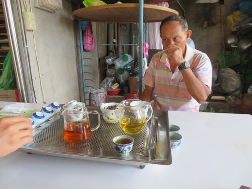 ちょうどよい散歩をしたと思った頃、目的地の欽明茶園に着いた。ここは謝さんがネットで調べ、この地区の茶葉販売班の班長さんだということで連絡を取ってくれていた。早速お茶を飲ませてもらうと、包種茶という名前ながら、坪林のそれとはちょっと違う。少し濃厚な感じがよい。さすが包種茶は南港発祥も頷ける。