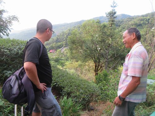 謝さんは余さんのお茶が非常に気にいって大量に買い込んでいる。特に東方美人は新竹よりずっと美味しいと言っている。包種茶もコンテストで何度も入賞している。有機茶園の認証も受けており、非常にいい感じの茶だ。バスは少ないので、外で待ちながら、ちょっと茶畑を見ながら話を続ける。バスが登ってきて、それが折り返して降りてくるまで待つのだ。天気が良いので気持ちの良い待ち時間となる。