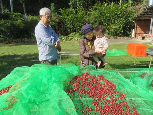 埔里郊外にあるSさんの家にも寄る。ここでは少量ながらコーヒーの栽培が行われ、ちょうど豆が太陽の下で干されていた。元々Sさんが演習林に興味を持ったのも、演習林でコーヒーが植えられたという歴史を知ったからであり、そのコーヒーを今は自分が作っていることを見せたかったのだろう。