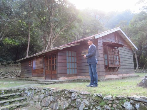 それから車で日月潭に向かった。いい天気だったが観光はなしで魚池の茶業改良場に行く。ここは日本時代に建てられたが、その初代から3代までの日本人所長は、全て北大出身者だというので、北大ゆかりの地として訪問した。ここには1938年建造の茶工場が現役で残っているほか、その後ろには新井耕吉郎の記念館がある。