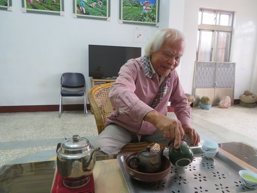 それから満洲郷へ向かう。恒春の門を出て、東に10㎞、前回も訪ねた朱松雄さんの家があった。ここは道路沿いにあり、分かりやすい。既にトミーが訪問することを事前に告げていたので、朱さん夫妻に歓迎された。ここは1年前に訪れた時と、特に変わった様子はない。『港口茶は緑茶か』という質問への回答はちょっと曖昧になる。