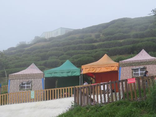 葉さんが預かっている茶工場をちょっと覗くと、何か問題が発生しているようだった。昨晩も遅かったから、まだ始末が付いていないのかもしれない。すぐに我々は別の場所に移動した。そこは何とキャンプ場、茶畑が見え、簡易な大型テントがいくつか並んでいる。朝から車が動いており、テントから出てきてチェックアウト?する人がいる。