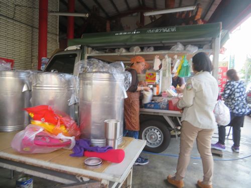 翌朝は快晴だった。6時台には起きてしまい、鹿谷を散歩する。山の方に少し登りたかったが、その時間はなく、あまり遠くには歩けないので、知っている道を上がり下がりしながら、僅かに残る茶畑を見る。そしてどこかで朝ご飯をと考え、探したが、意外と見付からない。何とかありついたのは、やはりサンドイッチ。場所は廟の前。何ともローカル感があってよい。