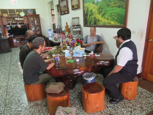 それからまた車を走らせ、李さんのところへ行く。彼は焙煎師として有名で、いいお茶を沢山持っていた。台東の原住民出身ということで、様々な苦労を乗り越えて、食べるために茶業をやって来た、と率直に明るく語る姿が何とも素晴らしい。焙煎室を見せてもらうなど、参考になった。