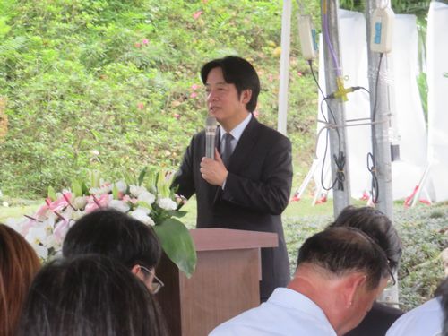 この慰霊祭、日本からお孫さんなどのご遺族及び出身地金沢の関係者が日本から来ている。台湾側も地元の顕彰会などから多くの人が参列している。マスコミ関係者もかなりいるようでしきりに写真を撮っている。さっき見たヘリポートの方にヘリが降りてきたような音がした。誰が来るのかと思っていると、何と行政院長の頼清徳氏が歩いて来るではないか。これにはちょっと驚いた。