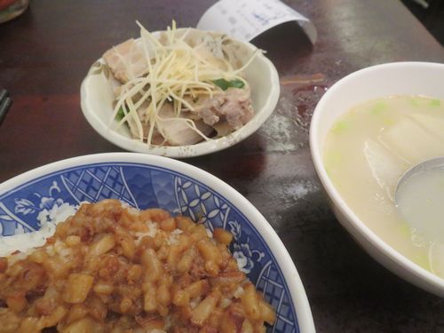 昼まで原稿を集中して書いており、何も食べていなかった。午後1時を過ぎ、さすがに腹ペコとなって、外へ出た。魯肉飯が突然食べたくなることがある。今日がその日だったようだ。更には暖かい大根スープも欲しい。そして付け合わせに?三層肉を頂く。生姜と一緒に食べると絶品だ。こういうものが簡単に食べられることにとても満足している。