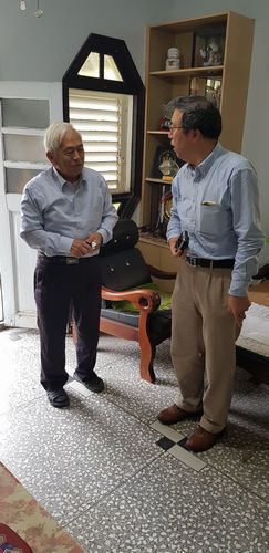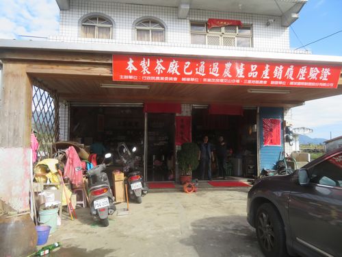 ここには最初に茶業を始めたと言われる一族の人も来てくれ、やはり宜蘭茶は1885年頃に始まったという話を聞く。そして日本時代の茶工場が今も残っているよ、という耳寄りの情報を得たので、是非見たいということで、車で向かう。行って見ると確かに古めかしい、かなり大きな建物があり、ドアなどには日本も感じられる。