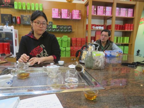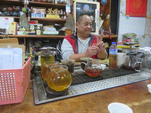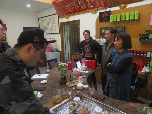 2年ほど前に一度訪ねた嘉茗茶園を再訪する。ここは蜜香紅茶を発明した高さん、粘さん夫妻のお店。お嬢さんも結婚後、花蓮から戻ってきて、茶作り、販売を手伝っていた。トミーはここの農会に招かれ、講演したことがあるとのことで、先生の扱いを受ける。蜜香紅茶の歴史、そしてここ舞鶴茶の歴史について話しを聞く。