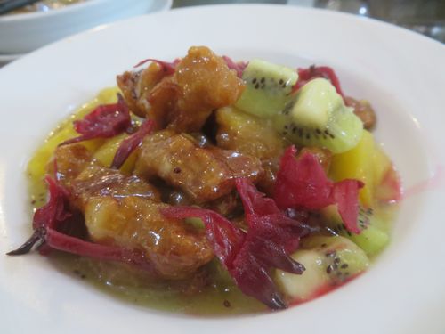 昼ごはんは高さんとお嬢さんが付き合ってくれ、地元のレストランに行く。レストランのお客さんも誰かは必ず高さんを知っている。彼は地元の有名人である。ここの料理はちょっと独特で、料理にフルーツのキウイが入っていたりして、とても面白い。美味しく頂く。ご馳走様でした。