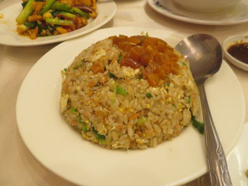 翌日は午前11時前に行天宮駅で3人組と待ち合わせ。先着していた彼女らは、既に裏の市場を物色していた。そこからいつものレストランへ行き、ちょっと美味しい台湾料理を食べに行く。11時半前に入らないと席がなくなるので、早めに動く。そして鶏肉、からすみ炒飯などをさっさと平らげて、満腹状態で、講茶学院台北へなだれ込む。