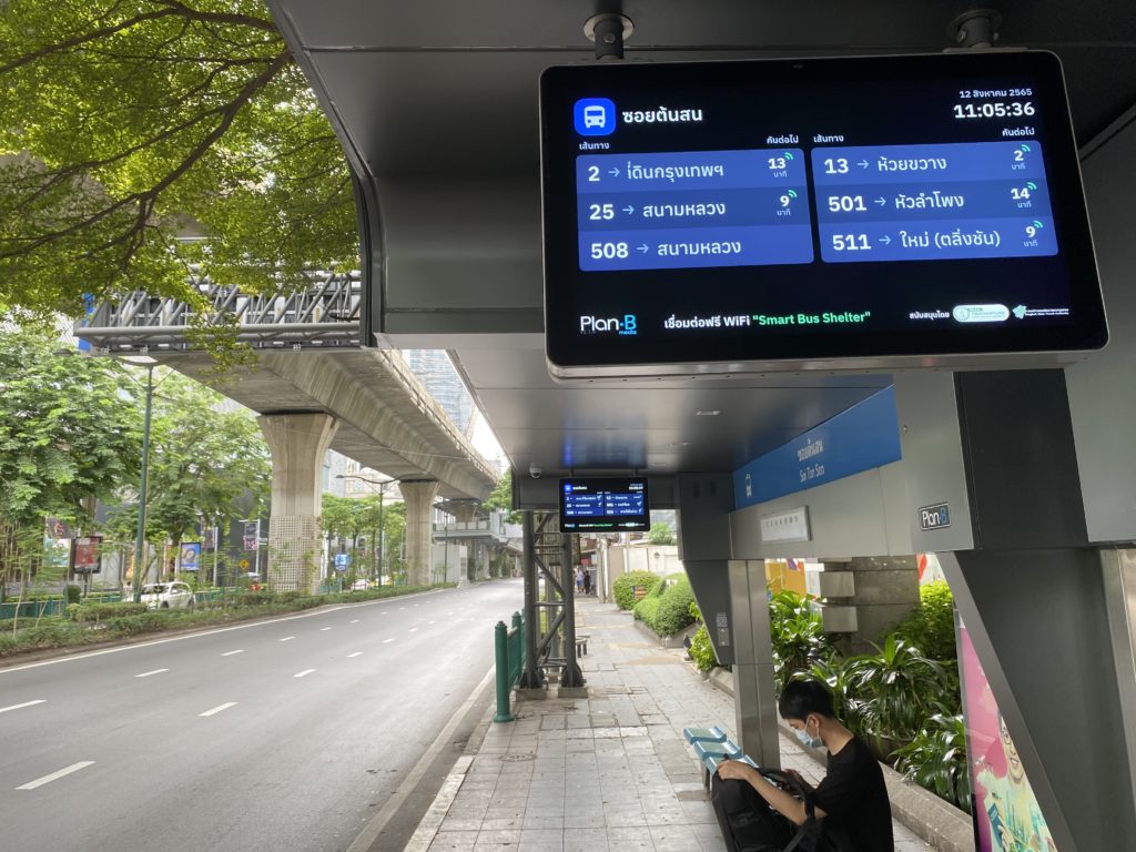 10時半、バスターミナルへ行き、久しぶりに赤バスに乗る。今日タイは祝日ということで閑散としている。赤バスはまだどこまで乗っても料金8bであった。このバス一本でチットロムまで行く。途中大型施設の工事現場を通り、懐かしの?日本大使館を通る。驚いたことにこの辺バス停には、電光掲示板が取り付けられ、何番が何分後に来るのかが、表示されている。これはシンガポールあたりのシステムを導入したのか。便利であり、進化が見られる。