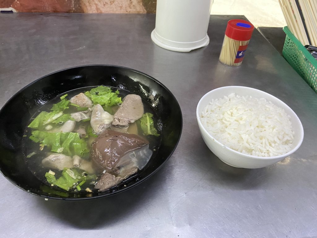 帰りのバスを待ったがなかなか来ないので、懐かしい場所を歩いてみる。昔泊まったホテルが改装中だ。やはり旅行解禁に合わせてリノベーションが行われている。宿の近くまで来ると雨が上がっていた。初めて入る屋台で臓物スープを食べる。このスープはなかなか美味しいのだが、一緒に出て来る白米が不味すぎる。この食べ物はバイタク運チャンなどが食べる一番安い食い物かもしれないが、何とも残念だ。