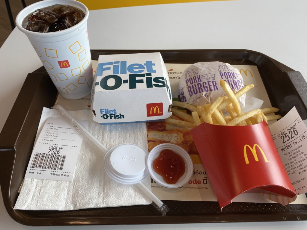 フィレオフィッシュバーガーセット(ポテトとドリンク普通サイズ付き)が99bはかなりお得感があり、安く感じられるが、全体的に見えれば、既に日本のマックの代金を越えているようにも思える。それでもタイのどこにでもあるマック、これもまたタイなのだろう。因みにコロナ禍ではドライブスルーが活躍しただろう、いやデリバリーだっただろうか。