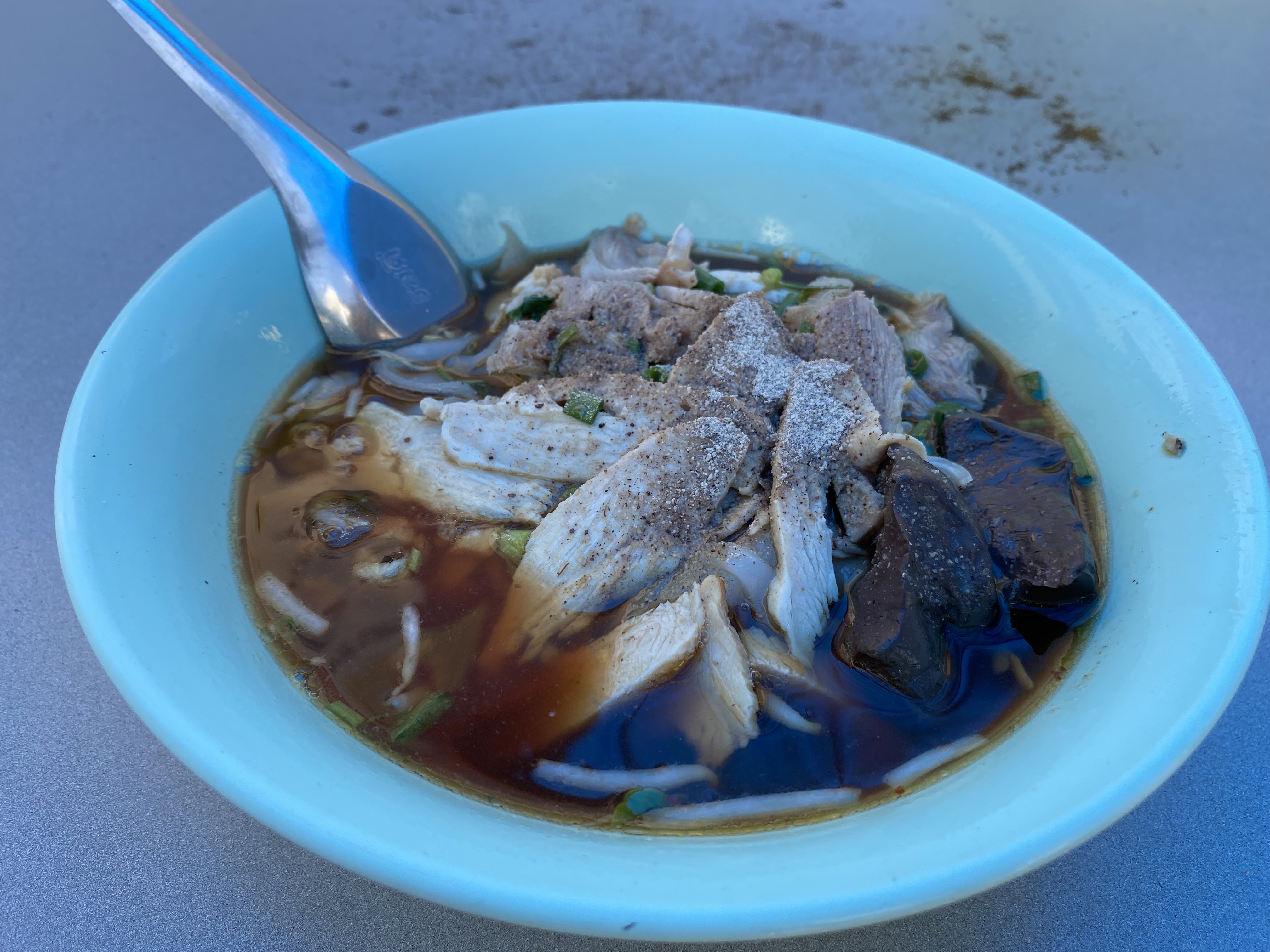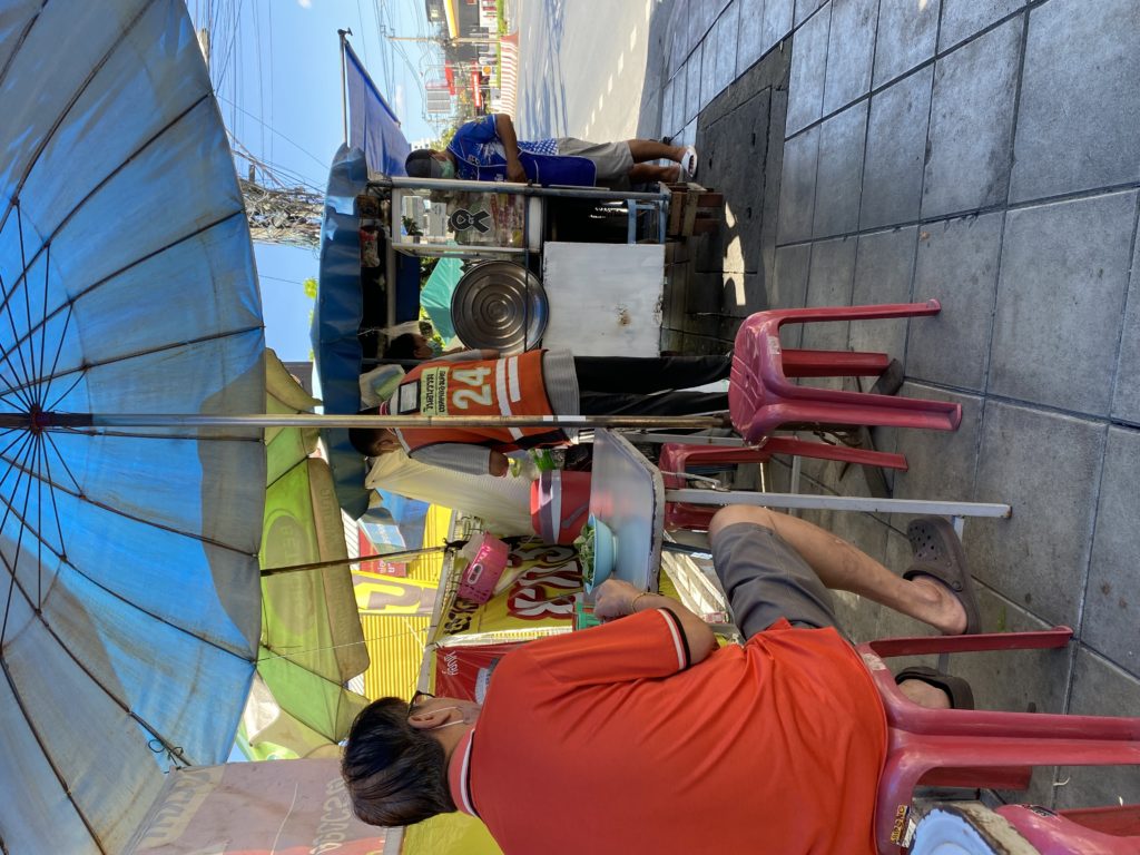 今日は日曜日で三連休の最終日。私にとっては外出しない日である。また朝ご飯を探しに外へ出ると道の向こう側に気になる屋台があった。先日見た時もバイタク運転手が列をなしており、一度食べてみたいと思っていたが、ちょうど席があったので、思い切ってトライする。