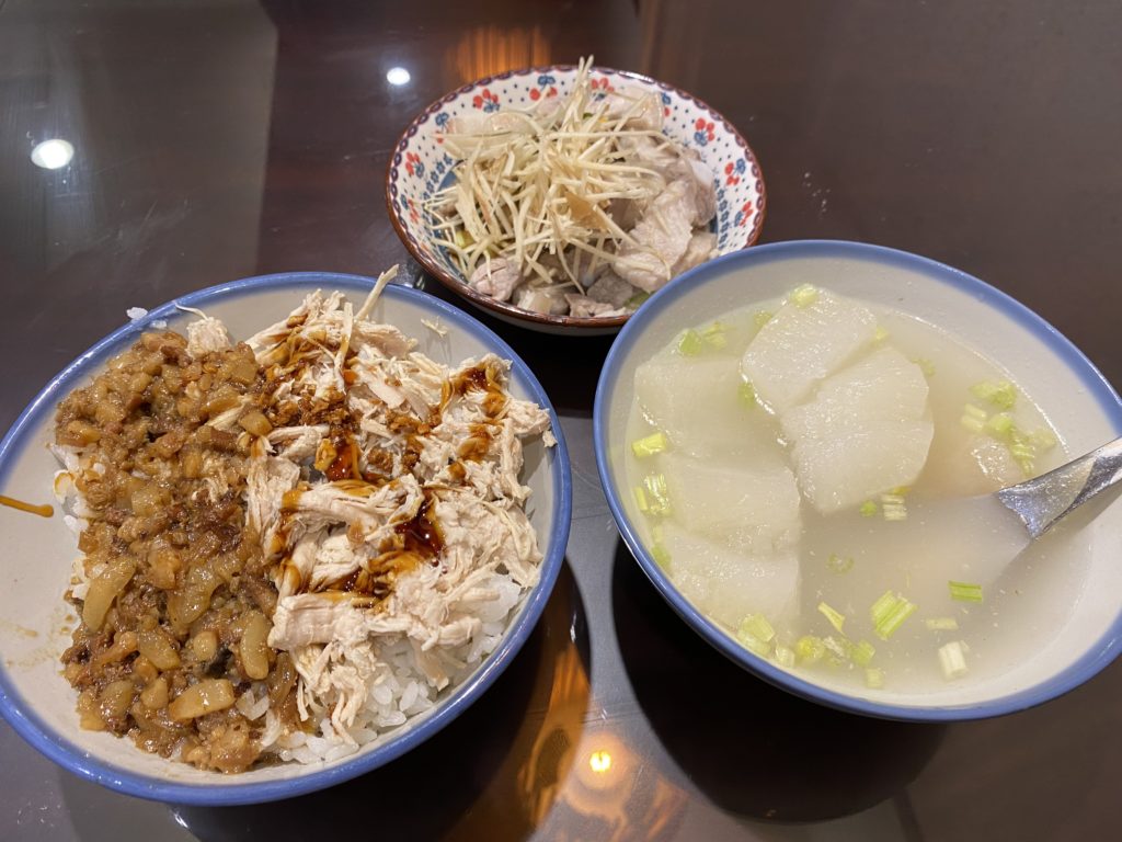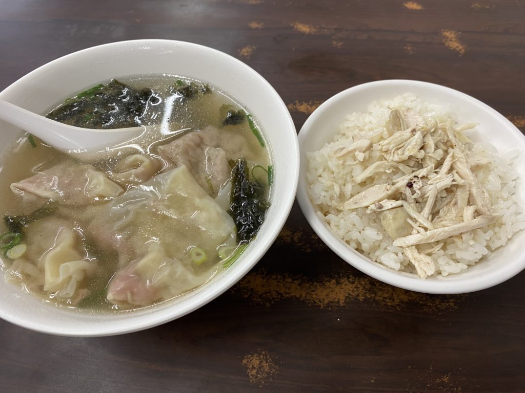 大きな道路に面して、温州大餛飩があったので入ってみた。ここではいつもワンタンメンを食べていた。午前中の中途半端な時間でお客は一人しかいない。お母さんが一生懸命ワンタンを1つずつ丁寧に包んでいるのが何とも良い。それを見ながら鮮肉餛飩湯と鶏絲飯のセットを注文する。何だかいつもと違う雰囲気。因みにこの温州大餛飩はフランチャイズ方式らしいが、店によってメニューがちょっと違う。