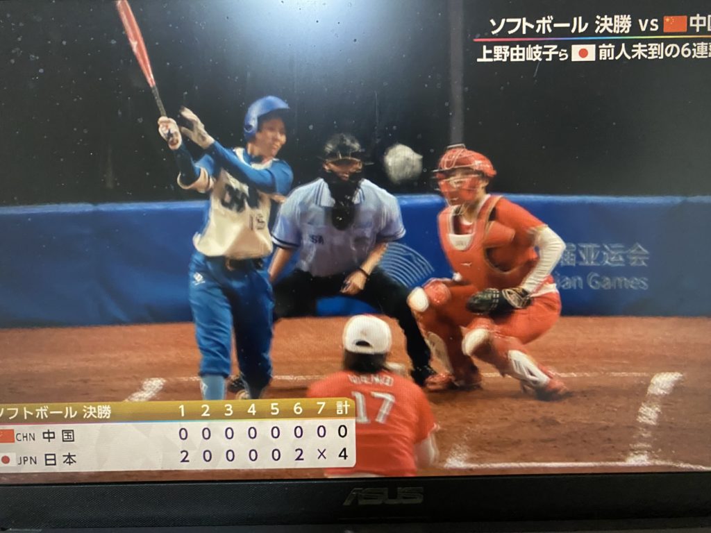 部屋に戻ると、アジア大会の中継を見る。女子ソフトボール決勝、日本対中国。何と途中から、あの上野由紀子が登場した。15年前上野の413球で有名になってから今日まで現役を続けていたとは。中国チームもレジェンドを見る目は暖かい。結局上野は抑え、また優勝した。彼女には一体何が求められているのだろうか。恐ろしい。