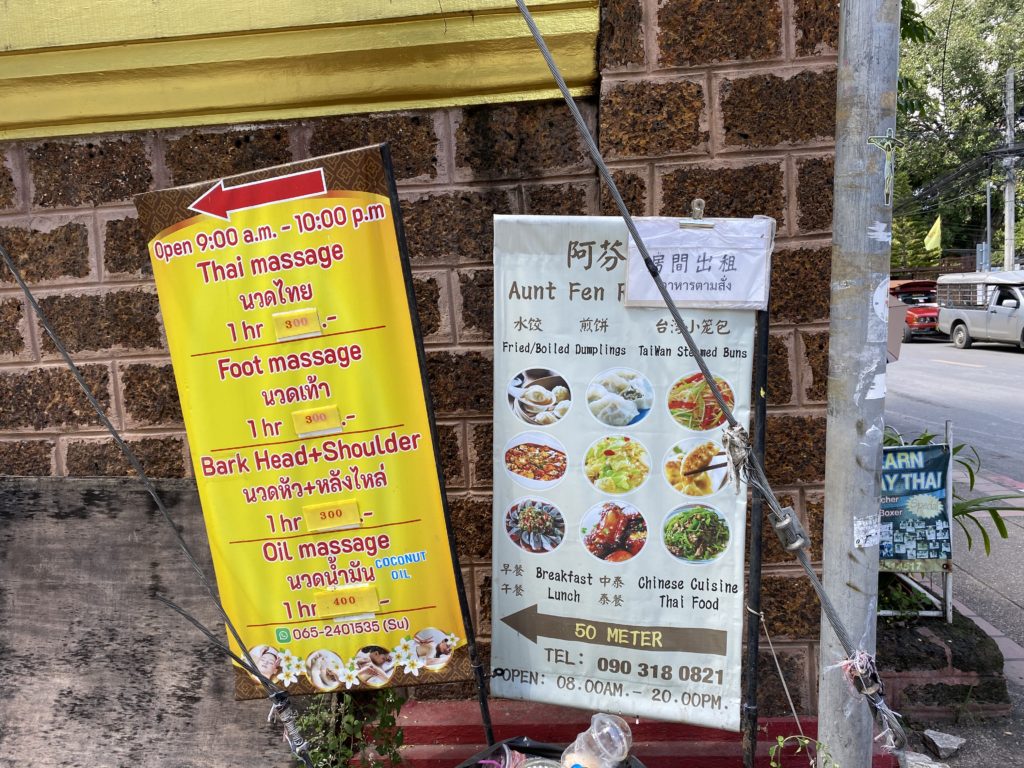 ただ帰るのはつまらないので、ターペー門で車を降りた。前回1か月滞在したこの付近の様子を見てみたが、工事中の建物や道路がある。そしてその先を左に曲がると、ミャンマー人がやっている中華料理屋が目に入る。前回1度だけ訪ねたことがあるが、そこの女性は完璧な華語を話し、台湾に長く住んでいたと言っていた。