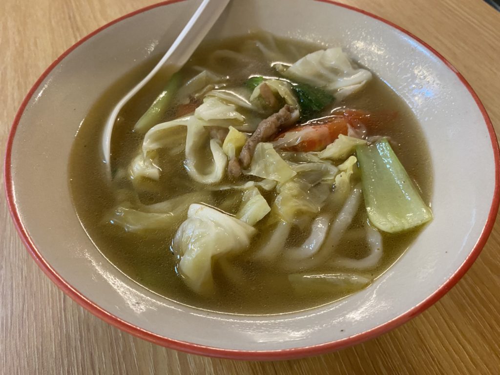 午後ちょっと雨が降る。止むと夕焼けになる。雨が降った後はちょっと涼しい。今晩は麺を食べようと、近くの食堂へ入る。ここは雨が降っても少し遅くてもやっている、私にとってとても便利な食事の場。コロナ前は白人や日本人のお爺さんたちのたまり場のようになっていたが、今はその数は少ない。経営が心配される。