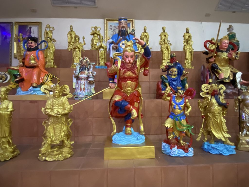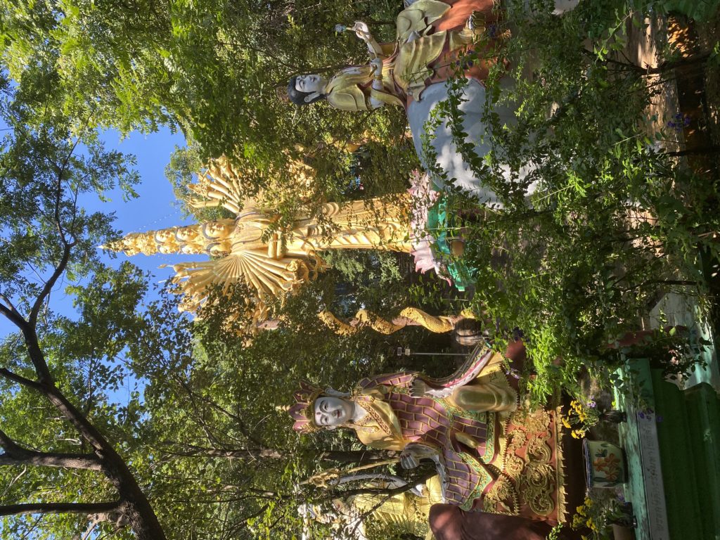 車は1時間ちょっと走る。かなりの田舎へ来た感じ、更に坂を上ると入口が見えた。しかし中へ入ってビックリ。まるでテーマパークかと思うような、千手観音などの仏像などが並んでおり、思わず写真を撮る。ネットで話題だったのは、この風景だったのだ。お寺の本堂はどこにあるのか。