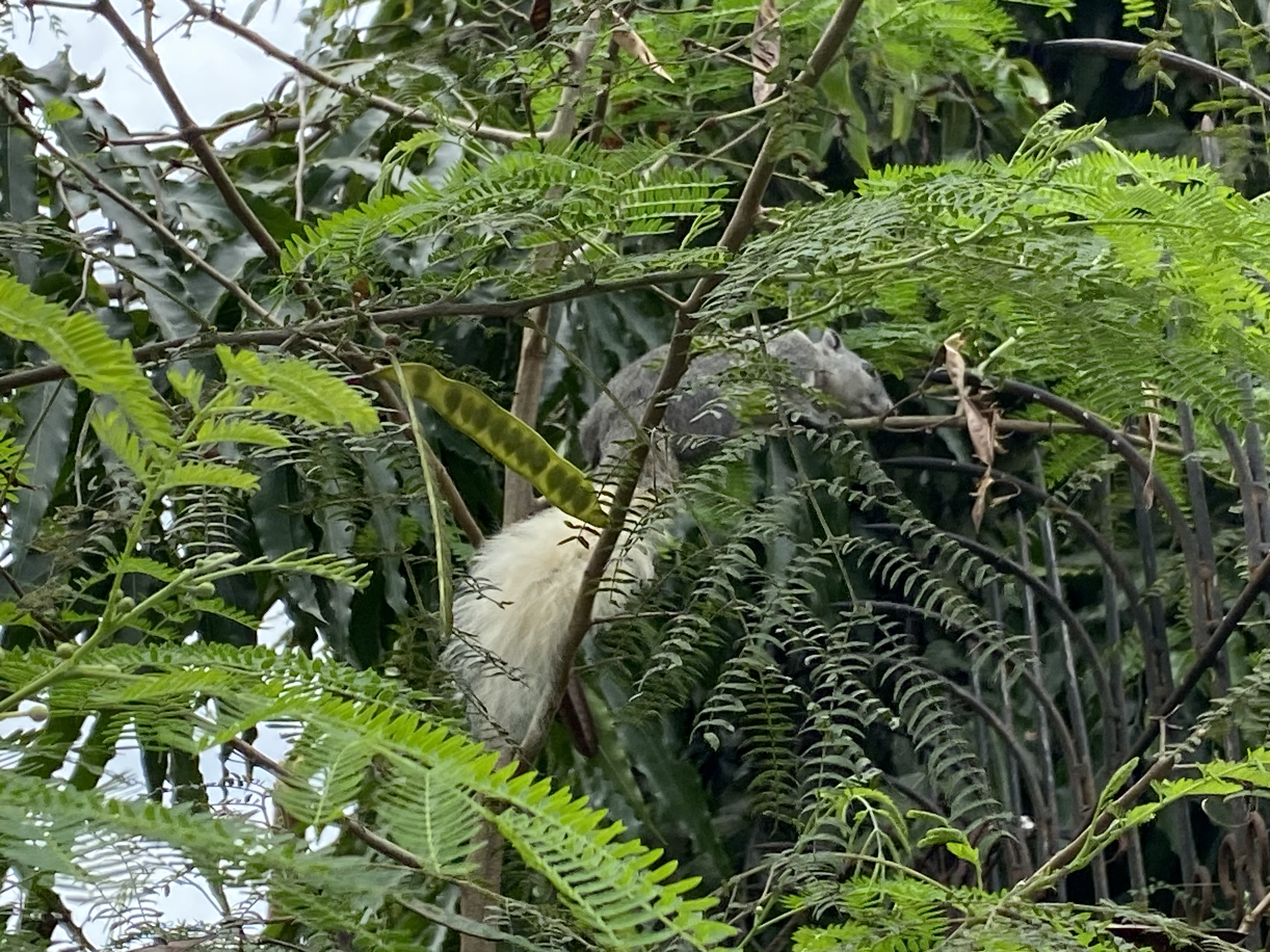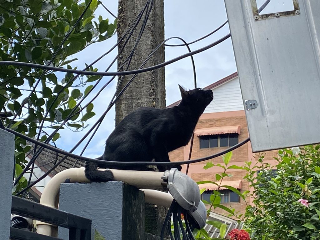 今日も朝はパンをかじり、昼前に外出。近所には立派な邸宅だけが並ぶ地域があり、そこに住むタイ人女性は、道で会うと丁寧に挨拶してくれる。その付近を歩いていると、今日もリスが一生懸命走っていた。その向こうへ行くと、今度は猫が塀に登ってこちらを見ている。何とも豊かな光景だった。