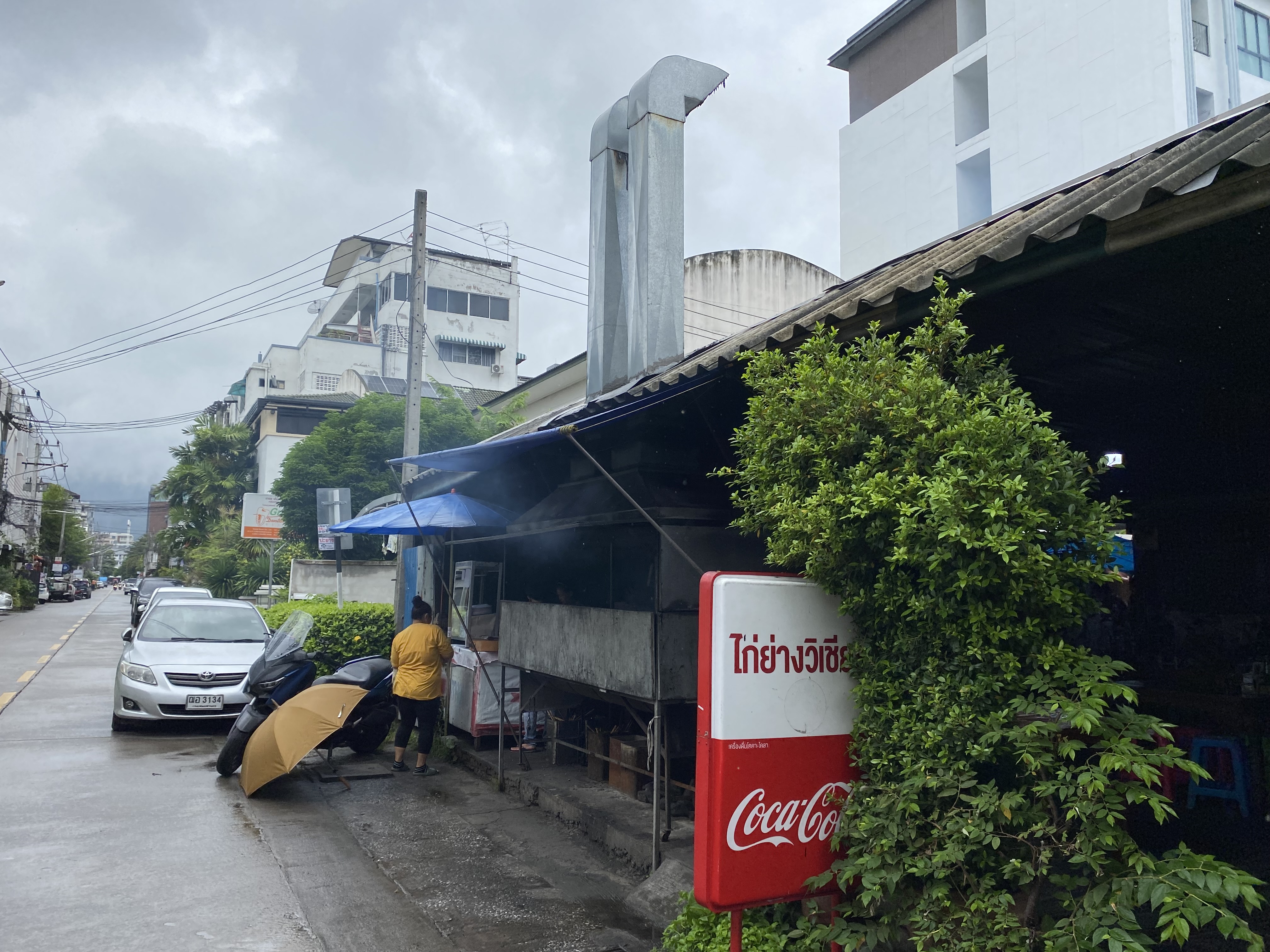 今朝はゆっくりして、昼ごはんにガイヤーンを食べに行った。ニーマンにあるこの店、白人さんたちも多く訪れており、満員盛況だ。最近は特にガイヤーンが食べたい、という気分にはならないのだが、煙が上がっているところに通り掛かると、何となく入ってしまうという悲しさ。まあ、旨いんだから文句はない。