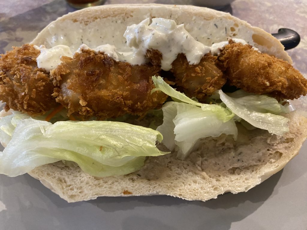 夕飯は近所の食堂に久しぶりに入る。ここも緊急時などに使うだけで、私の食事ルーティーンには入っていないが、偶に入っておこうと考えた。女性ばかりでやっており、白人さんも来ている店。タイ料理から、サンドイッチなどまでメニューは多い。今晩は魚フライサンドを食べてみる。私はマックで言えばフィレオフィッシュが好きなのだ。